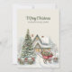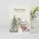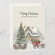 Skicka varmt helgdag med det här roliga tvåsidiga julkortet med en snöstuga, dekorerad träd och charmig röd vagn fylld med gåvor. Den handmålade vintagen stil fångar en traditionell julhelgs magi. Anpassa både framsidan och baksidan med ditt eget meddelande eller med din familj namn för att skapa ett enkelt nyckelord. Perfekt för att sprida glädje till nära och långt borta.