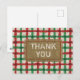 Rustik Jute Röd Grön Karo Högtid Tacksamhet Vykort