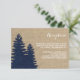 Denna rustika vinter bröllopssamling har en jutesäcksbakgrund med en marinblå siluett av en pinjeträds skog. Perfekt för ditt rustika eller vintage-inspirerade vinterbröllop.