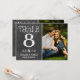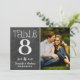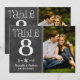 Kalkstensstil kalligrafi och ett stort foto på en mörk kalkstensbakgrund skapar ett charmigt rustikt bröllopstabellnummerkort. Paret namn och bröllopsdatum visas i dekorativa bokstäver under fotot. För att anpassa, skriv in tabellnumret, klicka på Ändra vid standardfotot för att ladda upp ditt eget, och lägg till det enskilda tabellnummerkortet i din varukorg. Upprepa för alla tabellnummer som du behöver.