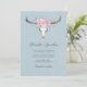 Rustik Ko Skalle Boho Rosa Blommig Akvarell Blå Inbjudningar