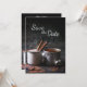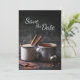 Det här Spara datumet bröllopsannonsen har en rustik miljö med en kopp te och varm choklad i kärlek.