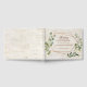 I modern och trendig har den här bröllop-gästboken en ytlig koppargeometri som är förskönad med vattenfärgen eucalyptus greenery och eucalyptus greenery Arrangements, över en faux birch bark struktur. Texten finns i ett motsvarande kopparfärg. Bakgrunden till fågelbarken sträcker sig över bok fullt, från baksidan lämnat till den främre högerna av täcket, så det är ett kontinuerligt utseende. Copyright Elegant Inbjudan. Alla höger reserverade.