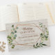 I modern och trendig har den här bröllop-gästboken en ytlig koppargeometri som är förskönad med vattenfärgen eucalyptus greenery och eucalyptus greenery Arrangements, över en faux birch bark struktur. Texten finns i ett motsvarande kopparfärg. Bakgrunden till fågelbarken sträcker sig över bok fullt, från baksidan lämnat till den främre högerna av täcket, så det är ett kontinuerligt utseende. Copyright Elegant Inbjudan. Alla höger reserverade.