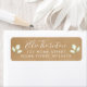 En elegant design med rosablad som innehåller ett skriptnamn och en returadressetikett med ditt namn i en skriptstil ovanför dina adressuppgifter i klassisk text på en rustik kraftbakgrund. Designad av Thisisnotme©