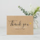 Rustik kraft bröllop tackkort med elegant svart och vit text, och guld kärlekshjärta på en rustik kraft bakgrund på framsidan. Baksidan visar ditt tackmeddelande på en rustik kraft bakgrund. Designad av Thisisnotme