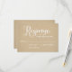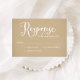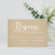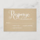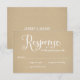 Ett koordinerande RSVP-brevkort med en vit kalligrafi "Svar"-rubrik med svarsdatum, gästnamnslinje och alternativ för närvaro på en varm kraftpapperbakgrund. Designen innehåller ett fält för gästräknare för att spåra antalet närvarande. All text, inklusive svarsdatum, är helt redigerbar.