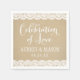 Ornamenterad "Firande Av Kärlek"-kaligrafi ramas in av en delikat vit spetskant på en varm kraftpapperbakgrund på dessa rustika bröllopsservetter. Paret initialer namn och datum i serifstil fullbordar den vintageinspirerade designen. En vacker accent för ett landligt bröllopsfirande, rustik cocktailtimme eller lantlig förlovningsfest.