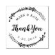 Anpassad bröllopspresent tack-stämpel med elegant handskalligrafi och handritade botaniska kransornament. Anpassa denna vackra cirkulära stämpel idag för att ge kuvert eller presentförpackning en touch av stil! Denna stämpel är också perfekt för alla högtids kort, DIY-gåvor och mer!