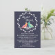 Modern möter rusticitet i denna bröllopsinbjudan. En handritad krans omger ett fågelpar. Bakgrunden är en mörkblå, men du kan ändra den till en annan färg. Klicka på Anpassa för att se dina alternativ. Teal turkos, nyanser av oliv och brunt fungerar fint med denna design. Dessa bröllopsinbjudningar är perfekta för att använda till ett vinter-, rustikt-, fågel-, natur- eller utomhusbröllop.