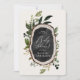 Rustic bröllop-krita och träsegmentsbabydusch inbjudan. Med vackra vattenfärgade blad, vita blommigtar, träsegment och manuskript. Detta moderna inbjudan kommer säkert att sätta stil för ert kommande party.