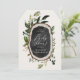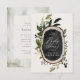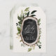 Rustic bröllop-krita och träsegmentsbabydusch inbjudan. Med vackra vattenfärgade blad, vita blommigtar, träsegment och manuskript. Detta moderna inbjudan kommer säkert att sätta stil för ert kommande party.
