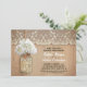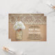 Söt rustik repetition middagsinbjudan med krukmakarvas med vit hortensia blomma. Perfekt inbjudan för landlig repetition middag med vintage spets och slitna trädetaljer.