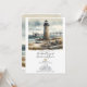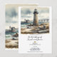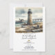 Rustik kustnära fyrstrand bröllop vid havet inbjudningar