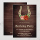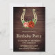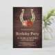 Rustik lada i trä land Floral Hästsko Födelsedag Inbjudningar