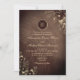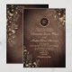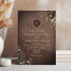 Transporter dina gäster till en charmerande lantlig tillställning med vår vintage eleganta bröllopsinbjudan i gammalt trä. Skapad med rustik allure har denna inbjudan intrikata boho-guld blommiga spetsaccentuer, som lägger till en touch av lekfull elegans.