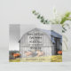 Det här Spara datum bröllopsmeddelandet visar en charmig rustik lada på landet med hästar.