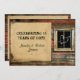Fira din speciella dag med denna roliga och romantiska temauppsättning. Perfekt för alla rustika, västerländska, lantliga eller vintage-teman. Bakgrunden är gammalt ladorvirke med bruna, orange och turkosa accenter. På höger sida finns ett fönster med ett hjärta som ser ut att ha ritats i dammet. En enkel pergamentinramning framhäver din text som visas på vänster sida. Perfekt för din rustika countryvästliga eller utomhusbröllopsjubileum eller -evenemang.