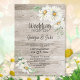 Rustik ladugård i trä, vita prästkragar, bröllopsf inbjudningar