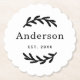 Eleganta rustika bröllopsbrickor med en skulpterad kantdesign med känsliga lagerkvistaccent på en ren vit bakgrund. Familjens efternamn och etableringsdatum i förfinad svart typografi bildar en klassisk monogrampresent. En vacker accent för mottagningsbordet eller personlig bröllopspresent. Personifiera med ditt efternamn och år.