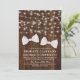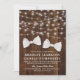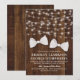 Med en rustik träbakgrund, romantiska stränglyktor, två klassiska vita brudgummens flitig och din bröllopsinformation.