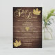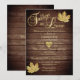 Vackra höstbröllopsinbjudningar i mörkt trä med guldbokstäver och metalliska guldlönnblad. Redigerbara mallar - enkelt att lägga till din information. Hittas i 'FALL IN LOVE - COUNTRY' bröllopssamling.