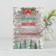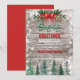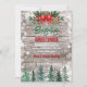 Rustik landsbygd röd flug Tie Jul julfirande välkomstkort. Rustika jul vintrig festinbjudningar med trä och snöflingor, grönska, söt röd band och julgranar, Anpassa detaljerna på dessa roliga rustika julfirande-inbjudningar för din kommande fest.
