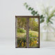 Gula blommor, grönt och träd. Snygg natur utanför ett gammalt fönster. Rustic gamle White Wood på baksidan. Fotografi.