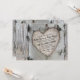 Eleganta bröllopsinbjudan för landsbygd med en utomhusscen från en skog, och ett rustikt silverbjörkträd med ett snidat hjärta med er bröllopsdags detaljer.