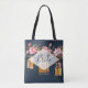 Denna romantik och chic till väskan är perfekt för medlemmen i brudens sida. Tote-väskan har vattenfärgade, rosa lyktor och elegant koral, ro guld och persikofärgade blommigtar på en marin blå bakgrund. Det är lätt att anpassa sig till namn, och bakgrunden till färg är också anpassade. Den här väskan är perfekt för den rotiska ladan bröllop eller bröllop möhippa. Koordinerande bröllop-objekt finns i min samling Rustic Lanternes Navy & Coral Blommigt Bröllop i min Zazzle-butik: