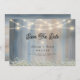 Meddela din speciella dag med rustik charm med hjälp av detta horisontella spara datum-kort med en lada träbakgrund och elegant landlig typografi. Perfekt för bondgårdshusbröllop, ladugårdslokaler eller utomhusfirande, sätter denna design tonen för ett varmt och inbjudande evenemang. Personifiera med era namn, bröllopsdatum och detaljer för att göra det till ert eget.