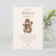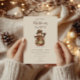 En mysig rustik juldesign med en charmig snorman iklädd en lappteknisk kapp, rutig halsduk och lantlig hatt. De varma jordnära färgerna och vintage-strukturerna skapar en nostalgisk lantlig stämning, perfekt för vintersamkväm, lada-fester eller mysiga familjefiranden. En tidlös och hjärtlig inbjudan som fångar andan av en lantlig jul.