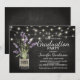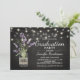 Fira din examenkandidat med en otvungen country chic-stil med denna rustika men ändå eleganta examensfest-inbjudan. Med en svart tavla-bakgrund är designen accentuerad med gnistrande strängljus och en charmig murarvaska fylld med lila lavendelblommor, inslagna i jute för en varm, lantlig touch.