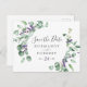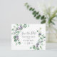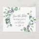 Den här rustiska lavendelcirkeln sparar datumet för vykort är perfekt för ett enkelt och elegant utomhus bröllop. Blommigtens utformning har vattenfärgen eukalyptus löv och grönt med sprit av lila vilda blommor.