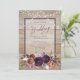 Den här bröllopsinbjudan visar ditt vackra plommon, lila och guld bröllop färg. Träbakgrunden och strängen ljus är avslappnad och romantik. Skriptteckensnittet är så elegant. Det här är perfektens inbjudan till din speciella dag!