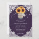 Rustic lila solrossbröllop med en solros och baby utandning bouquet inuti en mason burk på en lada trä och snöre bakgrund. Utformning av perfekt för att bjuda in dina gäster till ditt lila, rustiska landsbyggsbröllop party inspirerat av solblommor. Enkel att anpassa kortet.