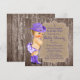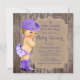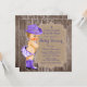 Bedårande lila cowgirl med lila cowboyhatt och lila cowboy-stövlar med jute på en rustik lada träbakgrund. Denna söta rustika lila cowgirl-bebisfestinbjudan är lätt att anpassa för ditt evenemang genom att helt enkelt lägga till dina detaljer i typsnittsstil och färg, formulering och layout som du väljer.