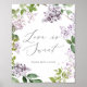 Denna rustika lila kärlek är söt brölloppsskylt är perfekt för ett vår- eller sommabröllop. Den romantiska och eleganta blomdesignen har vattenfärg lila syrener med en boho-lantlig trädgårdskänsla. Anpassa texten till vad du vill!