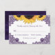 Rustiska lila- och solroskort med solrosblommor och blommigt snöre. Utformning av kort för perfekt som komplement till lila, rustik land, trädgård, bakgård eller ladugård som inspirerats av solblommor. Matchande artiklar som är tillgängliga för att passa väl med de här bröllopen OSA för blommigt av lila.