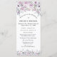 En vacker mall för DIY bröllop. En lush gräns av violett lila ro och läppar tillsammans med vita anemoner och sage grönt lämnar upp och grund i bröllopsprogrammet. Du kan använda det att beskriva din egen bröllop-ceremoni och bröllopsfest.