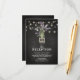 Lantlig chic bröllopsmottagning kort med en rustik svart kritskrifttavla bakgrund, lampor, en masonburk med lila lavendelblommor, inslagna i jute med parets initialer och en elegant mall för mottagning på kvällen som lätt kan anpassas.