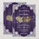 De romantiska julbröllopsinbjudningarna med burlap-hjärtan mot ett trä- och snöre-bakgrund med strängen ljus är perfekt för att bjuda in dina gäster till din lila rustic land/lada-bröllopsfest.
