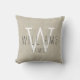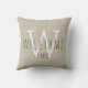Familj! Personligens kudde. Personlig beige, svart och vit monogrammad kudde med familjens efternamn i typografteckensnittsöverlägg på en bakgrund med tryckt beige linefotoeffekt. Elke Clarke© ger en underbarare gåva till nygifta eller till din familj. Underbarare trendig, elegantens tillbehör till ditt sovrum, favoritstol, som roligtens hemdekanter i ditt familjerum eller ett formellt dekorativt tillägg till ditt vardagsrum. Anpassa med namn, startdatum för monogram och datum för bröllop.