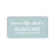 Bröllop spara datum-adressetikett för Ljusblå Rustic Linen-skript. Utformning av Elke Clarke© for MonogramGallery utskriven av Zazzle. Skicka ut datumkorten till dina vänner och familj med den här vackra, enkla etiketten med ord "spara datumet" skriven i ett vitt skrivmaskinsskript. Tryckt fotoeffekt av beige linne-bakgrund. Annan tillgänglig färg.