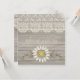 Detta är en vacker, rustik stiliserad bröllopsinbjudan avsedd för enbart en mottagning. Dess bakgrund har väderbitna grå träplankor, vilket ger den en varm och charmig känsla. Ett delikat krämfärgat spetsmönster med blomdetaljer pryder toppen och tillför en touch av elegans. Frasen "vänligen gå med oss" visas framträdande i graciös, kursiv stil, också i krämfärgad, som passar perfekt med temat. Längst ner finns en tusensköna med mjuka krämfärgade kronblad och en gul mitt, kompletterad med små gula blommor på vardera sida, som knyter samman designen med en naturlig och inbjudande estetik. Baksidan har en liknande design där du kan fylla i alla detaljer. Den är