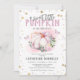 ‘Söt lilla pumpa’ flicka baby shower-inbjudningar med en enkel vit bakgrund, en söt rosa akvarellpumpa, fjärilar, blommor, eukalyptus, guld- och rosa stjärnor och en modern baby shower-mall som är lätt att anpassa.