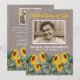 Fira dina nära liv med våra rustikt tema-inbjudningar. Med en varm trävägg som bakgrund, strålande gula solrosor och ett utrymme skräddarsytt för 2 meningsfulla minnesbilder, förenar dessa inbjudningar elegans med personlig touch. Den lättanvända minnesmallen gör det enkelt att förvandla dessa inbjudningar till tidlösa påminnelser om ett liv som levts fullt ut och älskats djupt.