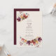 Gör ett fantastiskt första intryck med denna fantastiska rustika bröllopsinbjudan med lönnlöv för hösten - en elegant, naturinspirerad design med en vacker, välvd botanisk ram av akvarellmålade lönnlöv i djup burgunder, varmt bärnstensfärg och gyllene nyanser, mot en mjuk krämfärgad bakgrund med förfinad vinröd typografi. Perfekt för höst-, rustika och skogliga bröllop.