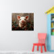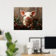 Poster med en digital oljemålning av ett sött gris omgivet av gräs och gräs träd med julgranar i ljus. Träbakgrunden lägger till en rustik vibe i teckningen.