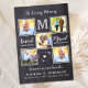 Rustic Chalkboard Unik Funeral Tack du Cards. De här sympatikorten har en unik fotokollage för 5 av dina favoritfoton, inledande mongram och namn, en hjärtfilt citat " In Loving Memory...Loved bortom ord, Missed Oåtkomligt...Forever in our Hearts" på en kalkylpanel i grått och vit design. Dessa minneskort är perfekter för begravning av tackkort eller firande av livets tackkort. Anpassa dig med ditt tack, namn och data. ...COPYRIGHT © 2020 Judy Burrows, Black Hund Art - Med alla Höger reserverade. Rustik minnessymbol - sympati för fotokollage - tackkort